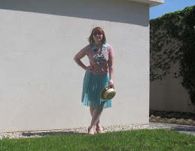 Voici un bon résumé en images de ce qui me plait en ce moment... la jupe plissée plutôt pastel, le style croisière avec marinière et canotier, détails tropicaux... et ces lunettes cœur que j'ai achetées chez Accessorize juste pour le fun, pensant ne les mettre que pour une seule occasion, et que finalement j'adore ! :) Le tout, sur un air délicieusement rétro, en attendant le marché de la mode vintage d'ici une dizaine de jours, qui en plus sera à deux pas de chez moi ♥