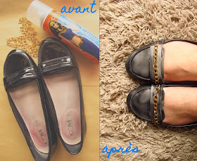 J'ai donc investi dans une petite chaine dorée sur ebay (moins de 2 euros, ça va), un vernis mat multi-usages chez Loisirs & Découvertes qui me resservira visiblement puisque je suis sur ma lancée de customisations et autres DIY (j'en ai d'autres en réserve à vous montrer ;) )...