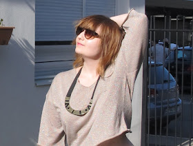 Et puis il faut aussi dire que j'ai eu un gros coup de cœur pour ce top beige très légèrement pailleté, recourbé en bas et au niveau des manches... Et que je n'ai pas pu résister.