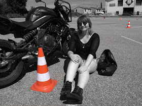 Mais certainement pas en Harley Davidson^^ et pis c'est pas vrai d'abord, suis pas comme ça, c'était juste pour le titre ;) Petit détour l'autre jour par le plateau où j'ai retrouvé mon moniteur moto revenu de vacances, pour lui partager avec lui ma joie d'avoir réussi la première épreuve du permis A avec son collègue. Et comme j'ai un concours photo en préparation ben... je l'ai mis au travail :D Ben voui, j'ai besoin des gens en fait ! et j'adore avoir des points de vue différents sur mon blog, ça raconte une histoire, et ça fait de bons souvenirs... bref, j'ai emprunté mon mentor quelques minutes aux autres padawans en sueur slalomant entre les plots des parcours pour ces photos^^