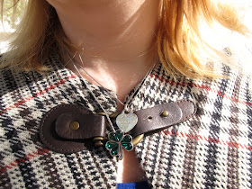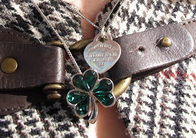 Ici à mon cou, mon cadeau New-yorkais de moi à moi-même, et le cadeau Irlandais d'une amie, qui me ramène en fait à Boston...