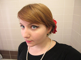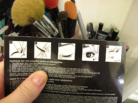 J'essaie donc avec juste le résidus de colle du packaging sur œil nu pour voir comment positionner l'eyeliner. Et déjà premier couac : il est tellement "rond" qu'il ne colle pas à ma frange de cils. Aussi, je trace un trait de crayon noir pour fondre le tout...