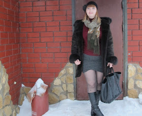 Photos triées, je démarre la diffusion au compte goutte de mes quelques articles made in Russia par un "look"... Que j'aurais probablement si j'habitais à temps plein en Russie : accessoires et vêtements "fashion", bottes et manteau... hum pratiques pour la météo locale, ainsi que châle traditionnel^^ J'ai aussi eu très envie de vous montrer cette silhouette devant l'entrée de la datcha familiale, je trouve que le rouge brique et le bordeaux vont très bien ensemble :)