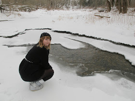 On était bien. On était confiants... on aurait pu continuer comme cela des heures durant. Mais nous étions tellement à l'aise, que nous avons fini par marcher au milieu de la rivière et non plus sur les côtés, et les lois de la physique ont fini par nous rappeler à l'ordre. Mon pied a traversé la glace et nous avons cueilli ces branches de sapin sur le chemin du retour, au rythme des "chkwik chkwik" d'eau dans mes bottes :)