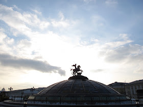 Traversons l'énorme avenue qui longe le kremlin, et nous voici dans "les jardins d'Alexandre", avec ses sculptures et fontaines gelées pour l'hiver...
