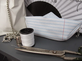 J'ai commencé par chercher sur le net s'il y avait déjà des pochettes de ce genre sur Etsy ou A Little Market, mais non... Mais en revanche, je suis tombée sur ceci : une trousse à crayons (ben quoi, de toutes façons ce genre de sacs on a juste de quoi mettre le téléphone, la CB et un rouge à lèvre...) en forme de petit bateau imprimé cahier d'école à seulement 7$95 !