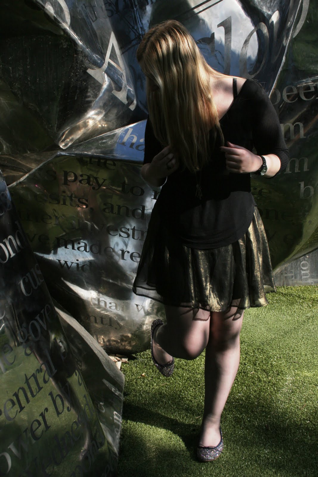 Mais en plus dark^^ Ben voui, j'ai quand même un foulard à pois autour de la tête ;) Je reste persuadée que mes cheveux rouges et un look un peu grungy ça vire vite au cliché de la métalleuse lycéenne attardée, mais je ne résiste pas. Après tout, je l'ai été autrefois, et cette semaine je compte commencer à concrétiser un rêve de tatouage... alors autant cesser de me fuir moi-même puisque visiblement, il y aura toujours un peu de cette ado rebelle et provoc' amoureuse de Kurt Cobain en moi !
